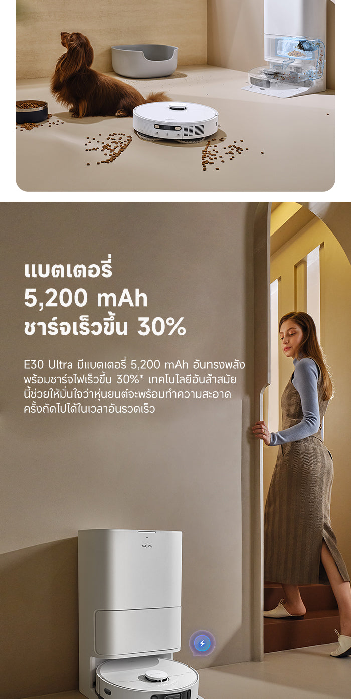 ◾สัมผัสความสะดวกสบายของ MOVA E30 Ultra Robot Vacuum and Mop อุปกรณ์ทำความสะอาดอัจฉริยะที่ไม่เพียงแค่เทฝุ่นออกอัตโนมัติ แต่ยังมีฟังก์ชันถูพื้นแบบทำความสะอาดตัวเอง ทำให้การทำความสะอาดบ้านเป็นเรื่องง่ายดาย