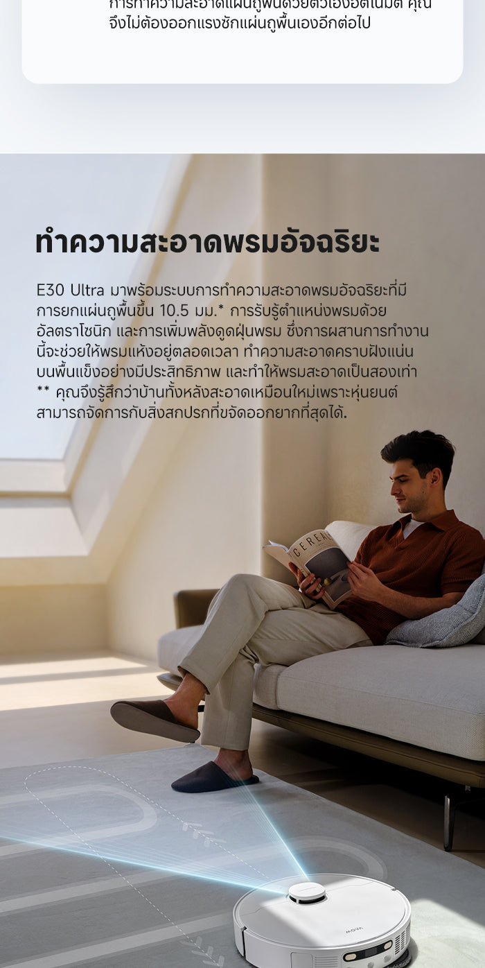 4.ประสบการณ์ทำความสะอาดที่ไร้รอยต่อ:ไม่ว่าจะเป็นพื้นแข็งหรือพรม E30 Ultra สามารถทำความสะอาดได้อย่างมีประสิทธิภาพ ทำให้บ้านของคุณสะอาดหมดจดในทุกมุม