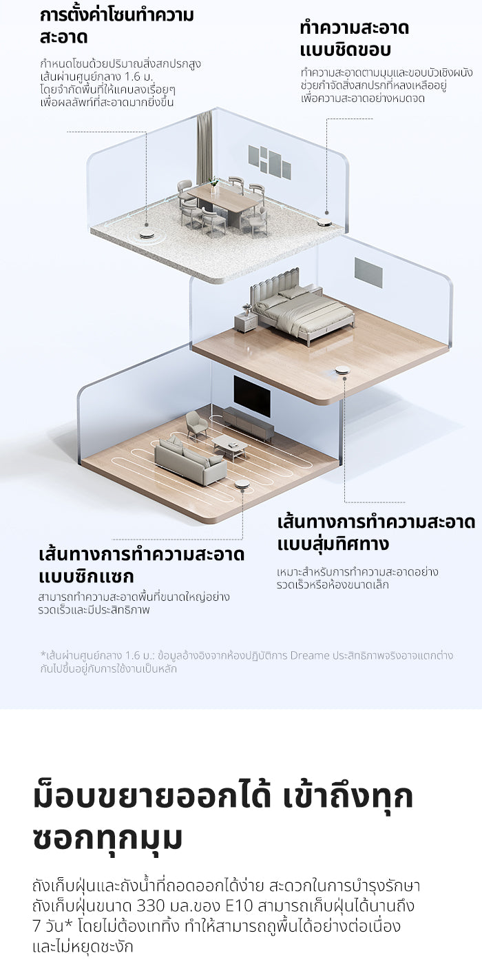 เส้นทางทำความสะอาดชิดขอบ ทำความสะอาดมุมและขอบเพื่อลดฝุ่นที่หลงเหลือ
