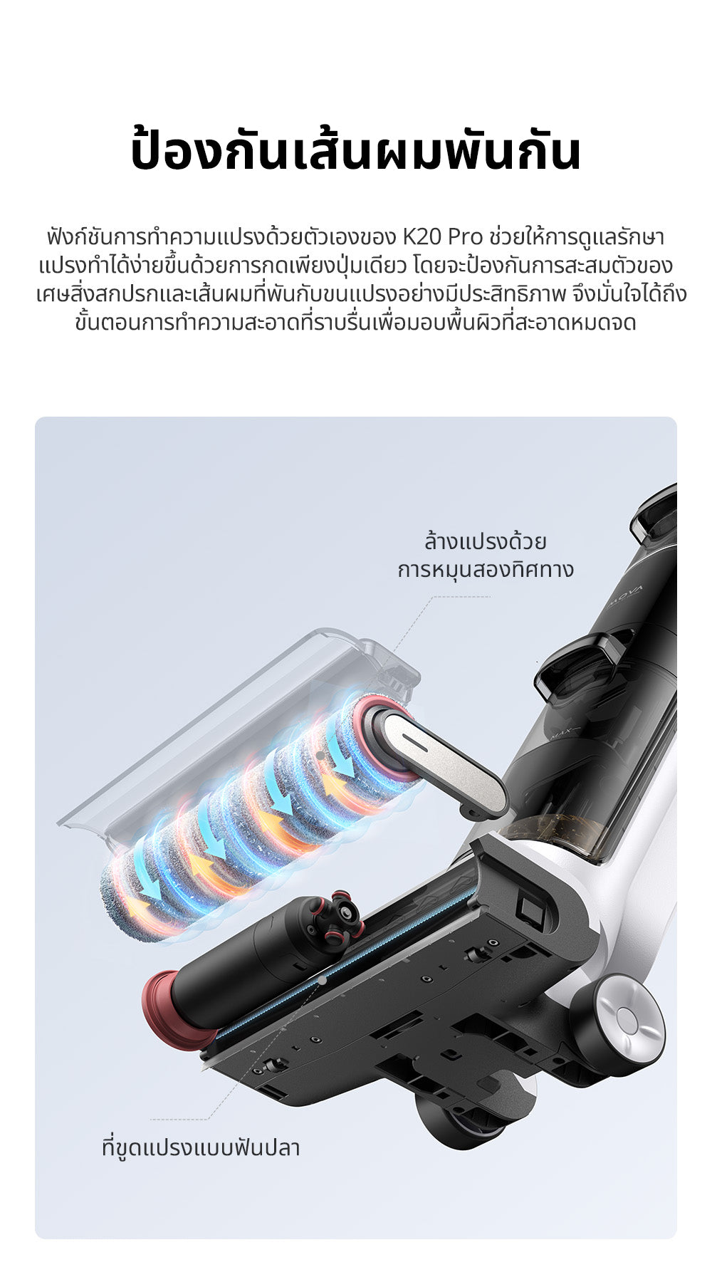 ไม่เว้นแม้แต่มุมใด! ระบบทำความสะอาดขอบสองด้านที่ล้ำสมัยของ K20 Pro ช่วยให้ทำความสะอาดได้ทั่วถึง ครอบคลุมทุกซอกทุกมุม เพื่อความสะอาดหมดจดทุกครั้ง
