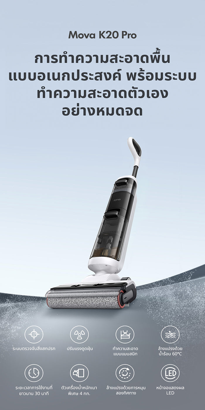 MOVA K20 Pro Wet and Dry Vacuum เครื่องดูดฝุ่นถูพื้น กำจัดแบคทีเรียได้ 99.9% ทำความสะอาดขอบสองด้าน รับประกัน 2 ปี