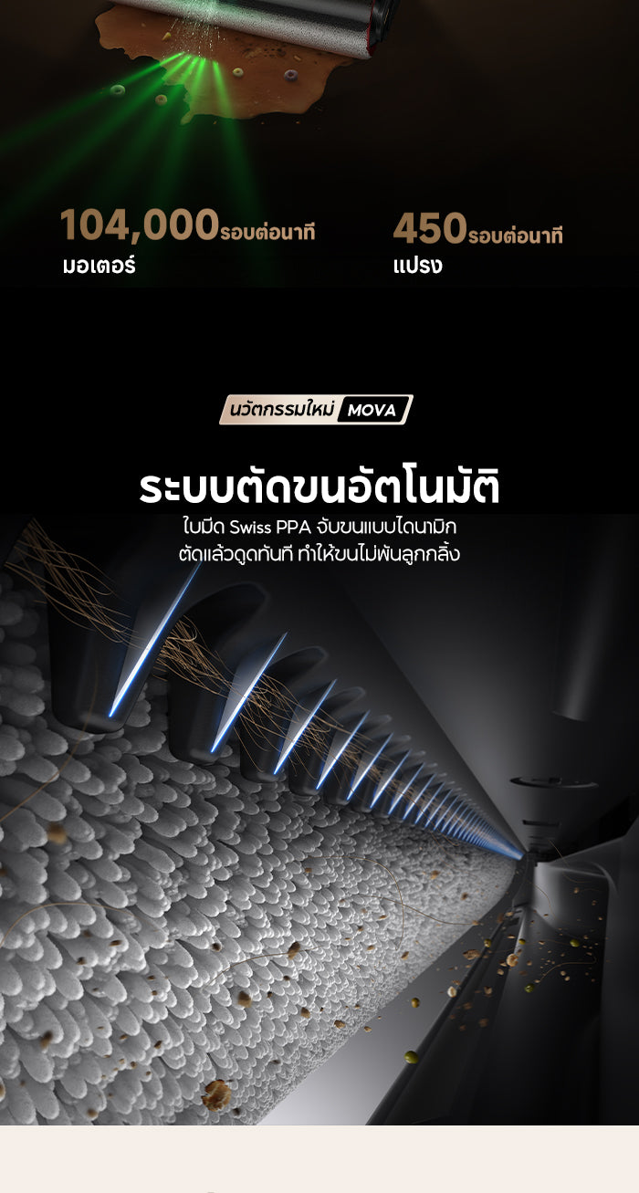 ✅ แถบขูด + ฟันหวีออกแบบมาเป็นพิเศษ หมดปัญหาเส้นผมพันกัน