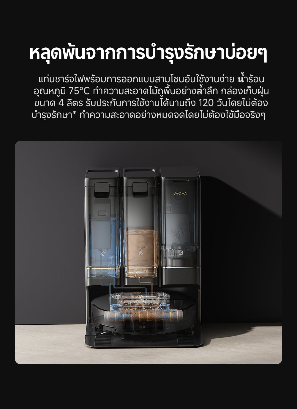 ระบบดูแลรักษาอัตโนมัติ – เติมและระบายน้ำ อัดฝุ่น และเติมน้ำยาทำความสะอาดโดยอัตโนมัติ ลดภาระการใช้งาน