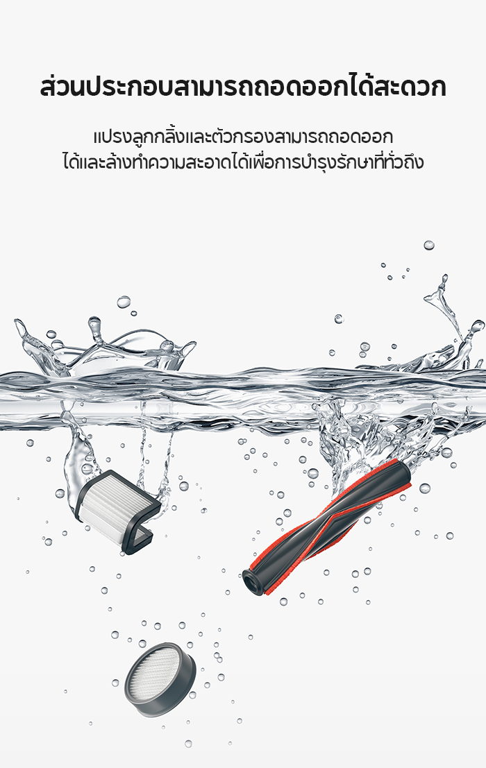 แปรงลูกกลิ้งและตัวกรองสามารถถอดออกและล้างทำความสะอาดได้ เพื่อการบำรุงรักษาที่สะดวก